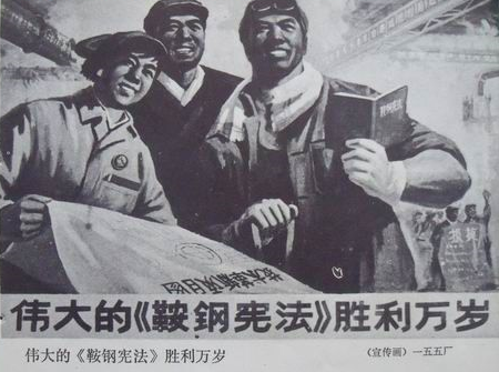 1960年3月22日,毛泽东在鞍山钢铁公司《关于工业战线上大搞技术革新和技术革命的报告》中批示称:“鞍山宪法在远东、在中国出现了。”直至今天,很多四十岁以上的工人还能背出“鞍钢宪法”的内容,即“两参一改三结合”:干部参加劳动、工人参加管理;改革不合理的规章制度;工程技术人员、管理者和工人在生产实践和技术革新中相结合。