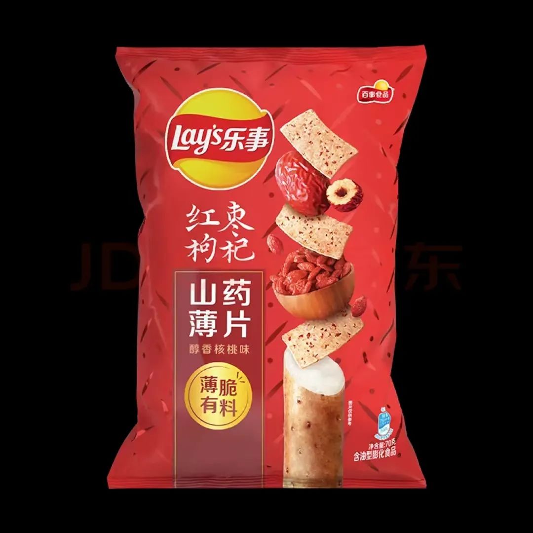除传统药企和保健品企业外,普通食品企业也开始朝着药食同源的方向做延伸和创新。据《2023天猫饼干膨化行业趋势报告》,添加了黑米、山药、猴菇的饼干产品市场规模增速排名前三;被打上“垃圾食品”标签的薯片,也开始加入红枣枸杞、黑芝麻奇亚籽等配料。