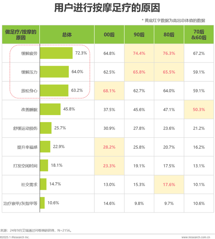 缓解疲劳和压力、放松身心,是用户按摩足疗的主要原因