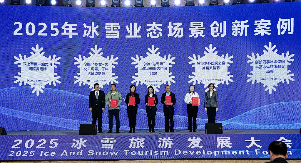 哈尔滨马迭尔文旅投资集团的“尔滨×波司登”中国城市联名中国品牌、乌鲁木齐市文化广播电视和旅游局的乌鲁木齐丝绸之路冰雪风情节、青州市文化和旅游局的创新“‘冰雪+文化’场景,千年古城焕新颜”、热雪奇迹控股有限公司的“创新四季冰雪体验,丰富冰雪旅游融合场景”、浙江云上草原旅游发展有限公司的“云上草原一站式滑雪服务品牌”荣获2025年冰雪业态场景创新案例。