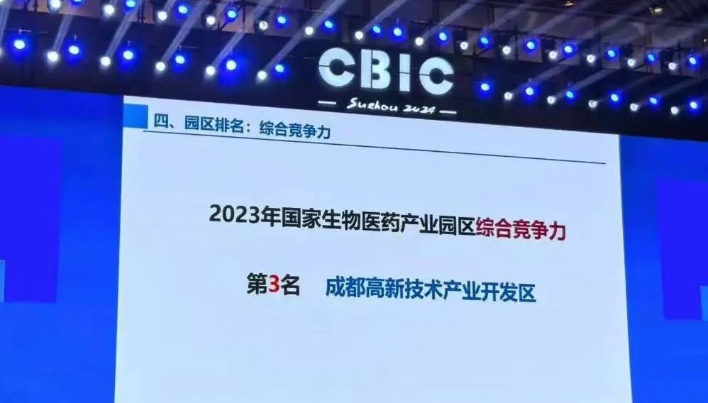 全力追“新”、实力呈“新”,在最新公布的“2023中国生物医药产业园区综合竞争力排行榜”上,成都高新区排名第3,2024年更是“捷报频传”。
