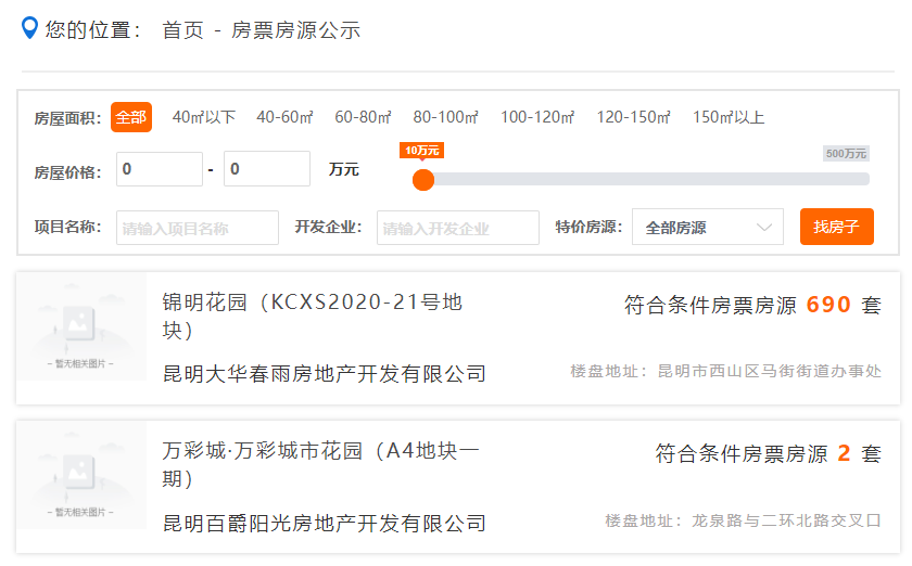 另据昆明房产信息网公示结果显示,截至目前,昆明符合条件的房票房源共计690套,均来自大华锦绣山海星萃苑项目,含车位和住宅两种类型。其中,住宅房源面积最小为建面约61㎡,最大面积为建面约138㎡。