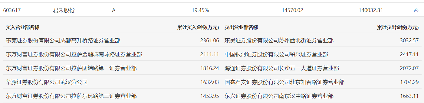君禾股份今日跌7.27%,龙虎榜数据显示,上榜营业部席位全天成交2.03亿元,占当日总成交金额比例为14.47%。其中,买入金额为9374.39万元,卖出金额为1.09亿元,合计净卖出1514.76万元。