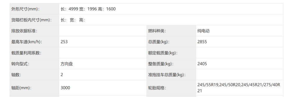 从工信部申报中透露的尺寸来看,小米YU7的长宽高分为为4999/1996/1600mm,轴距为3000mm。