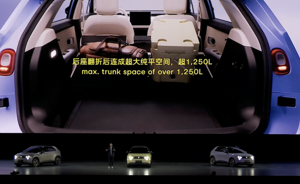 同时,李斌还介绍了萤火虫的“小车大空间”,新车配置了92L的前备箱空间和最大1250L的后排座椅放倒的纯平空间。