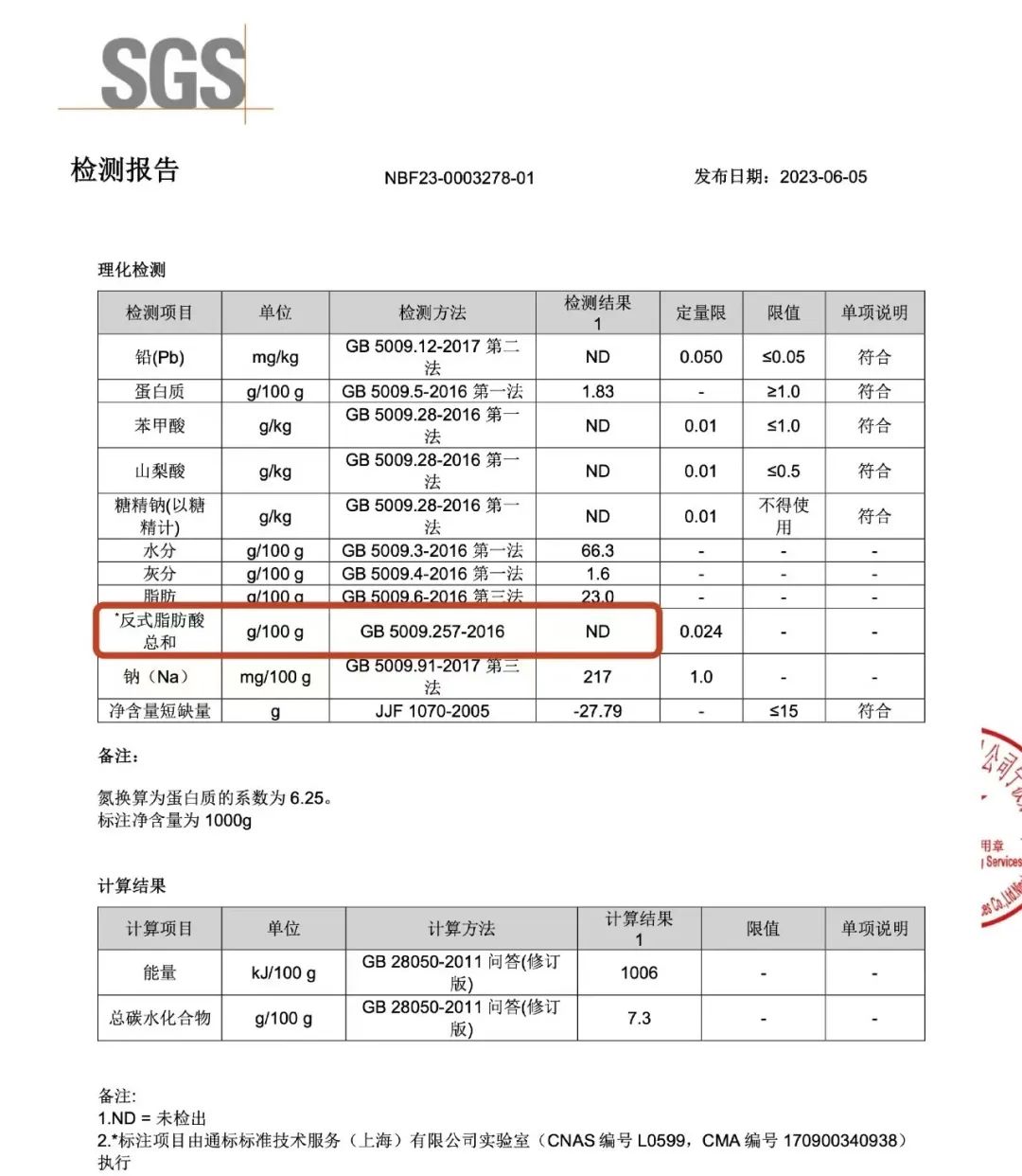 上述测评博主将植脂末与冰勃朗送检发现,植脂末检出了反式脂肪酸,而“冰勃朗”则未检出,也证实了这一点。