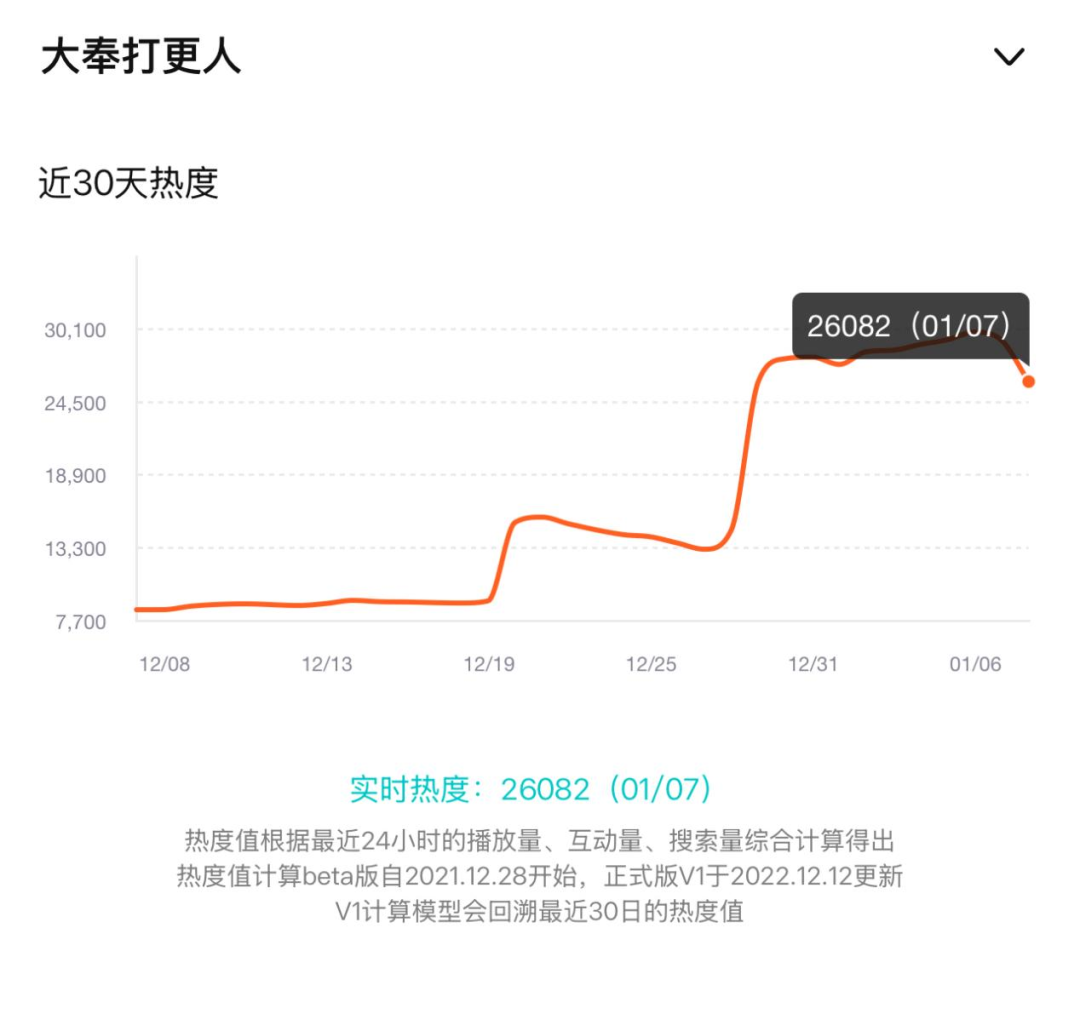 可硬币的另一面是,时至当下,已经播出过大半的《大奉打更人》云包场数量以21万+再创新高,但在腾讯视频的站内热度却依旧没能冲破30000。