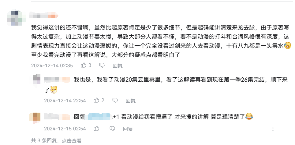 主创几乎周周直播动画剧集答疑,这在国产动画领域绝无仅有,也从侧面反映出《剑来》动画的理解确实有一定门槛,不得不需要官方进行更直白的解读。