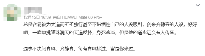 需要额外付费的几集堪称全季高潮:齐静春以身殉道,换取六千百姓皆有来生;主人公陈平安得到老剑条剑灵认可,最终踏出新手村,走向广阔的洞外天地。最后一幕“道友再会”令观众感慨万分,评论和弹幕里除了不舍便是催更“速速把第二季抬上来。”
