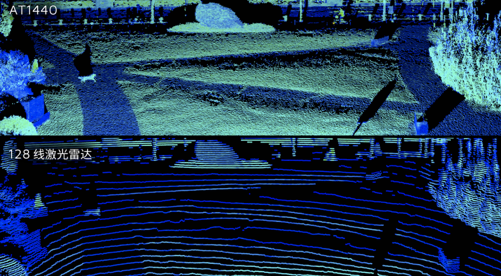 ▲禾赛AT1440(上)和128线激光雷达(下)点云对比
