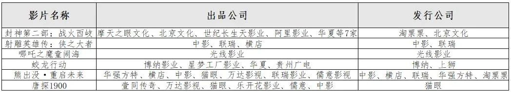 总的来说,从出品到发行,从构成到玩法,目前电影行业内的主力玩家基本都在这个春节档聚齐了,这些公司无一例外都将短期内的所有希望全部押注给了这个档期。