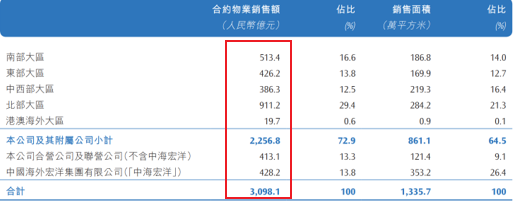 根据公司2024年半年报,2024年中海地产主要销售区域在中国东部、北部和南部区域,港澳区域仅占2.2%。