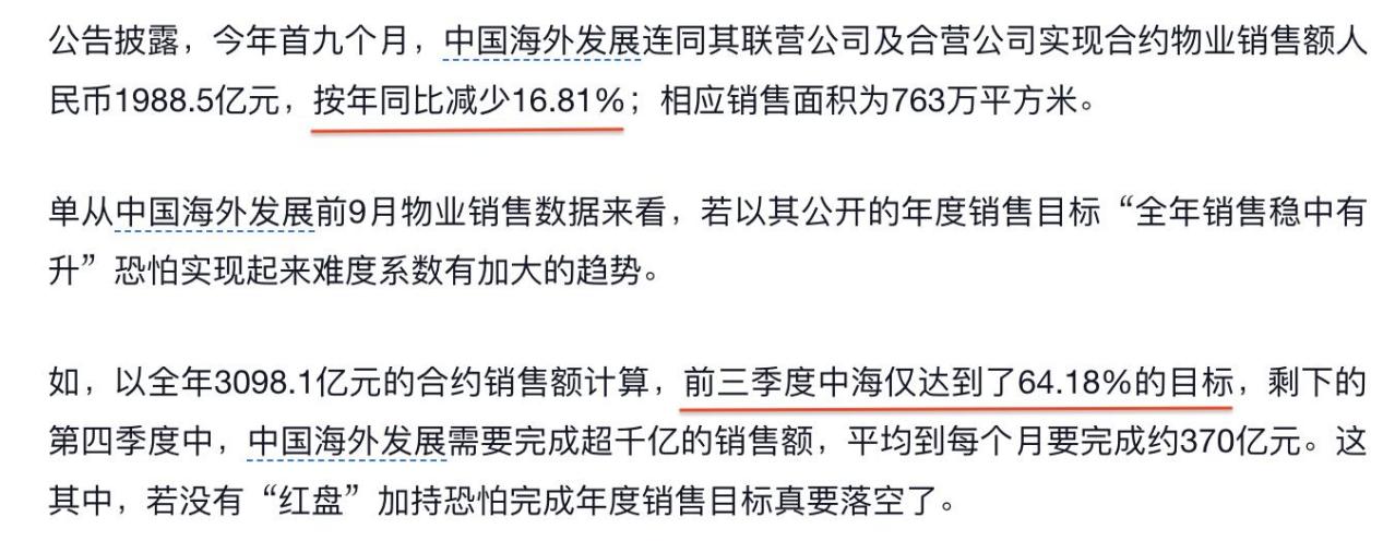 从结果来看,中国海外发展在销售额上算是合格,但销售面积却大幅下滑。