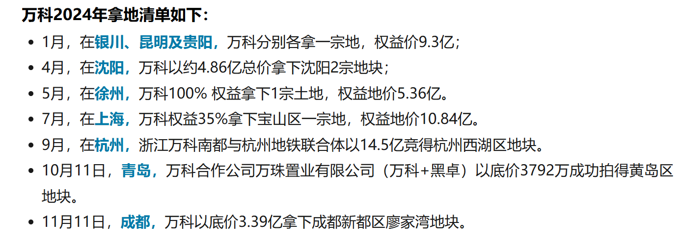 然而,在房地产企业资金普遍紧张的背景下,收缩战线是各大房企的通常做法,像万科2024年全年拿地仅在40亿元左右。
