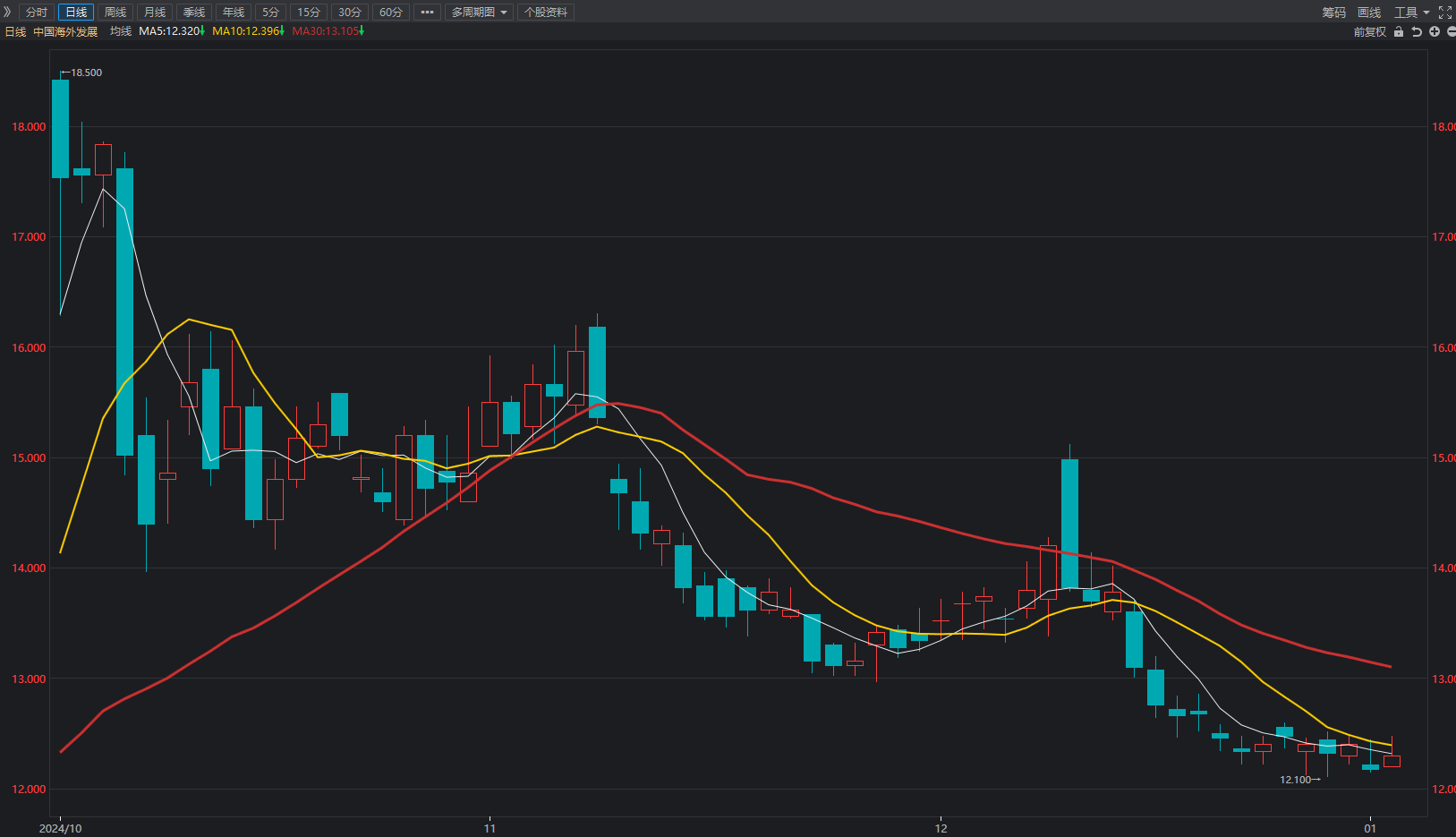 截至1月8日,中国海外发展(00688.HK)报收12.12港元,动态市盈率5.87倍。