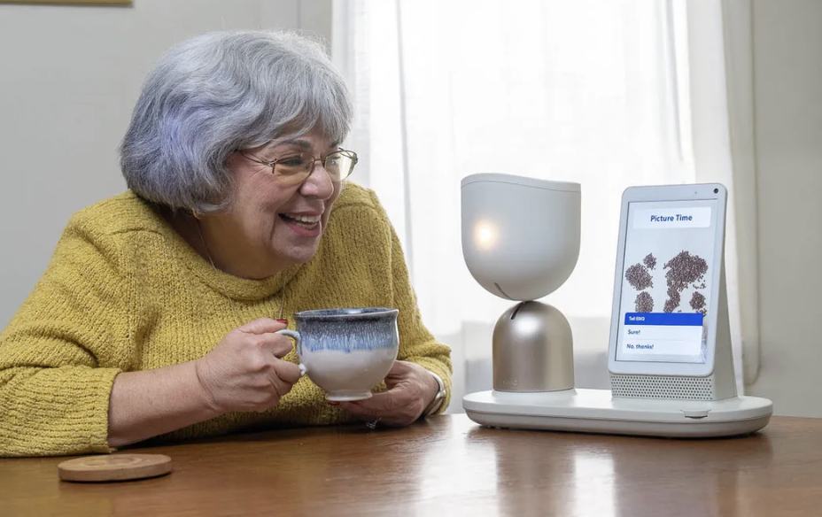 陪伴机器人ElliQ鼓励老年人与其交谈,同时还提供娱乐、健康管理等信息。