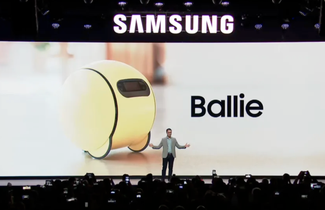 三星圆形机器人Ballie可以说是CES的“老顾客”了。五年前就曾登上CES展台,当时Ballie跟随时任三星消费电子部门首席执行官HS Kim在舞台上互动时,还只是个会摇头和打滚的“婴儿品”。