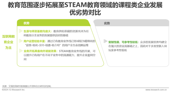 教育范围逐步拓展至STEAM教育的企业,具备强大人力等资源基础,经营模式复制性较弱
