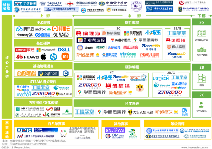 配合监管制定标准,扎根运营赛事活动,向上游拓展研发软硬件与内容,向下游推动STEAM教育理念传播