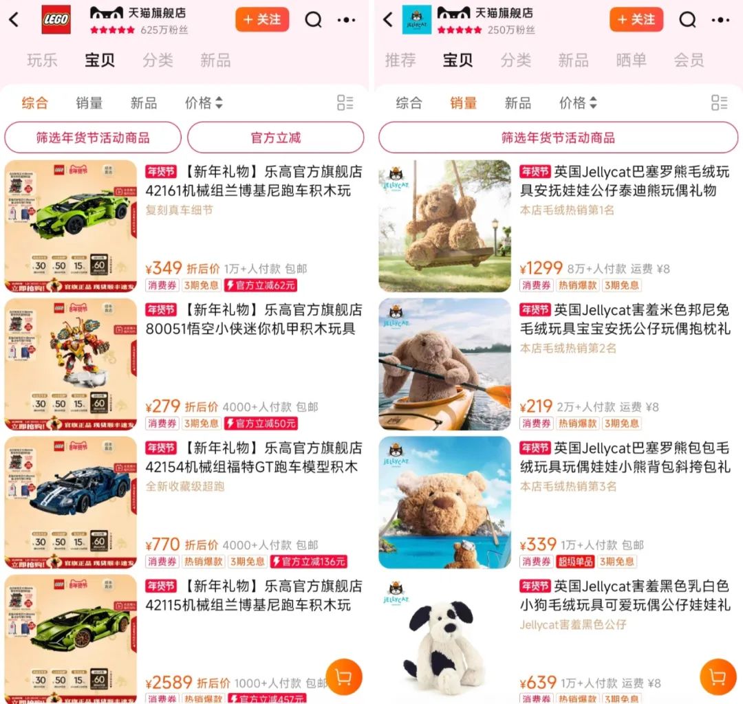 如上文所述,根据雷报的统计,乐高、泡泡玛特和jELLYCAT是24年热销爆款最多的三家潮玩品牌。而实际上,三家品牌同时也是积木、毛绒、盲盒三大细分品类赛道各自的绝对头部。