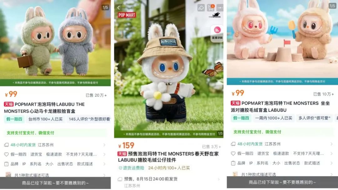 例如,泡泡玛特去年大火的LABUBU(THE MONSTERS)的多款热销产品因为早早下架而未能被统计在内。其中,根据相关数据显示,LABUBU心动马卡龙搪胶盲盒单品天猫销量超20万件,初步估算销售额至少超2000万;THE MONSTERS春天野在家LABUBU搪胶毛绒公仔,以499的单价售出3万+,预估单平台单品销售额突破1500万;LABUBU二代搪胶毛绒坐坐派对已售最高达10万+,预估单平台单品销售额突破1000万。此外,还有其他IP的相关热销产品也存在这一情况。