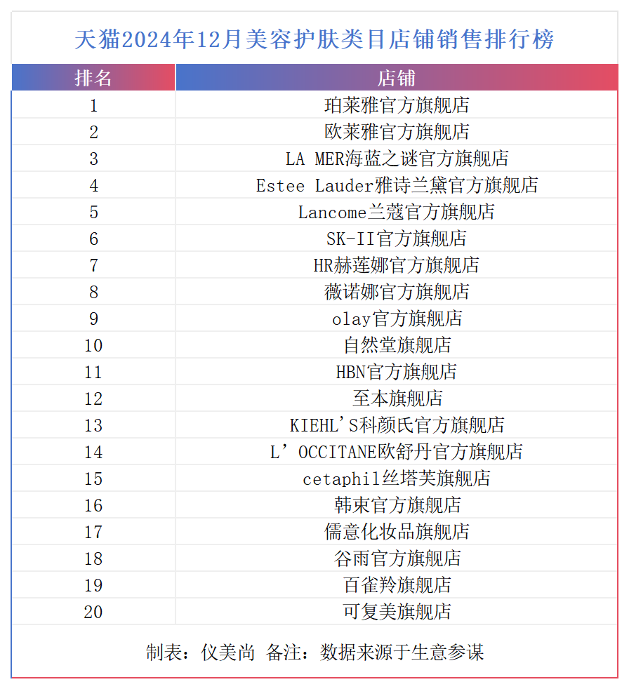 在天猫,“王者地位”几乎被珀莱雅旗舰店“垄断”。生意参谋后台数据显示,2024年全年,珀莱雅官方旗舰店一直稳居TOP1之位。