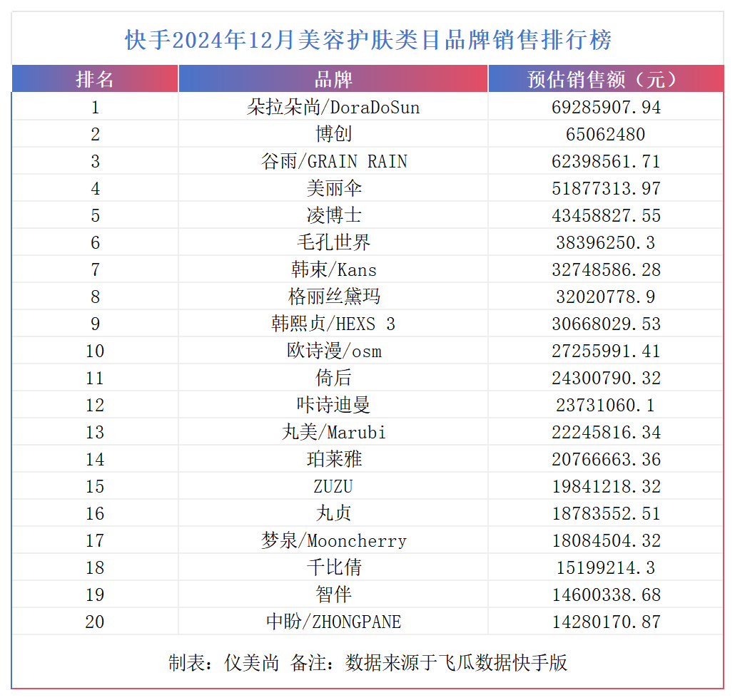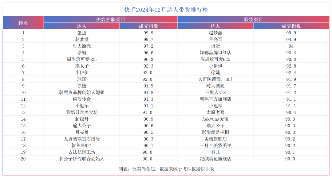 与抖音电商类似,白牌美妆12月在快手也取得了不俗的战绩。