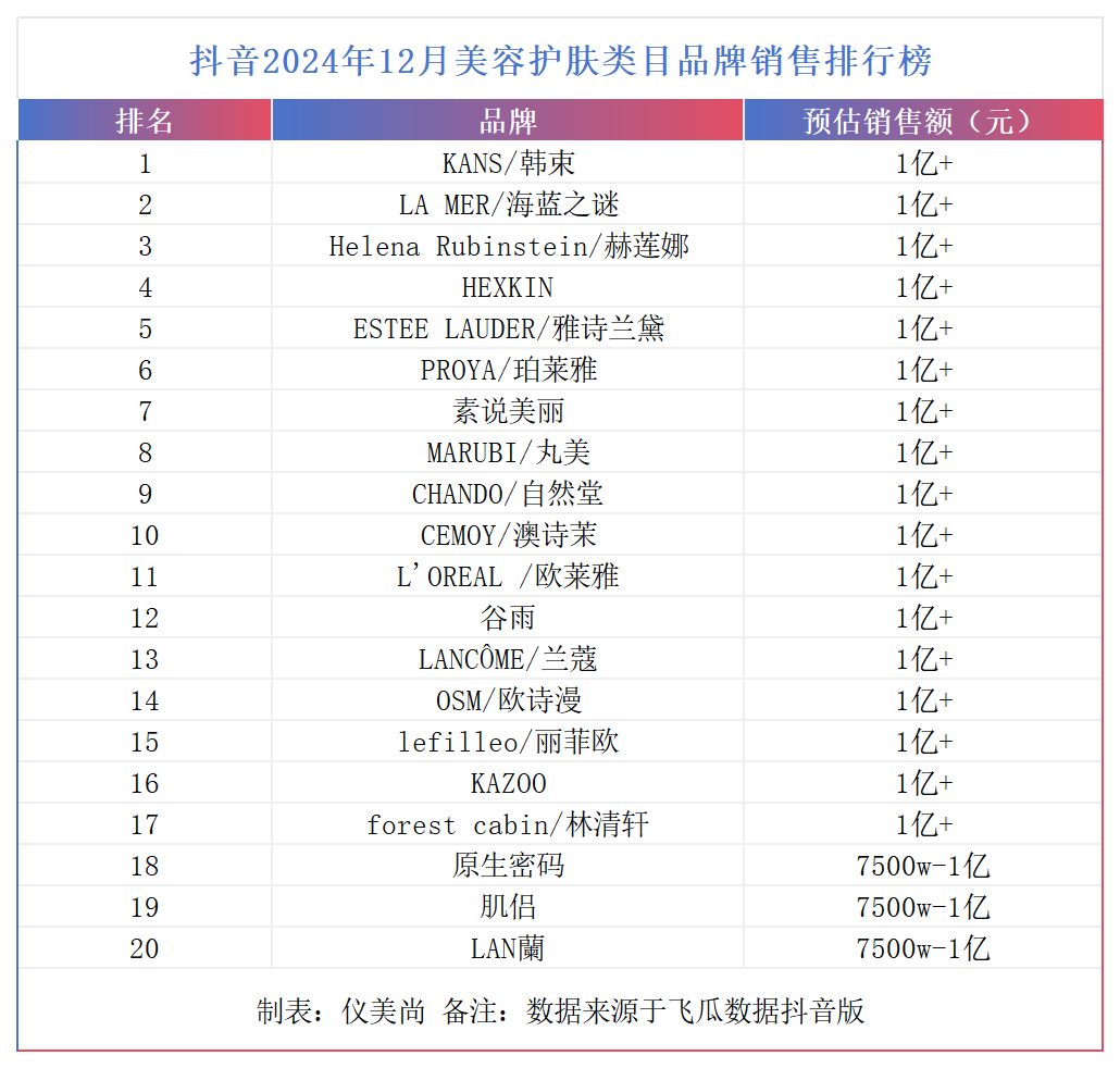 与上述天猫美容护肤TOP榜不同的是,在抖音电商,韩束位列第一。