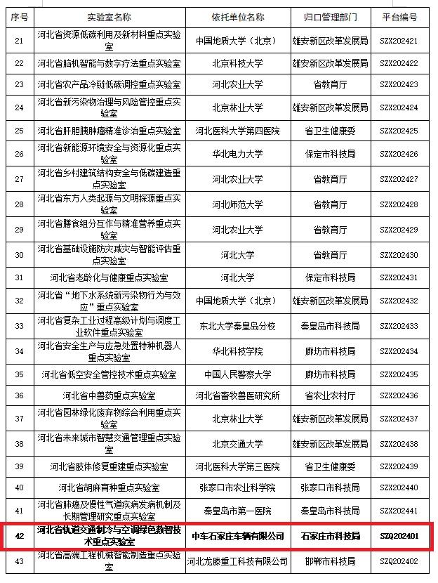1. 河北省轨道交通制冷与空调绿色数智技术重点实验室(中车石家庄车辆有限公司);