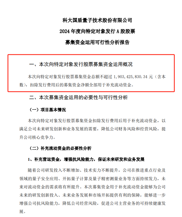 而谋求高质量发展背后,国盾量子,当前最急需的实则是通过定增募资获得新的资金补充,支撑公司在量子技术开发与迭代和市场开拓等工作上需要投入的高额费用。