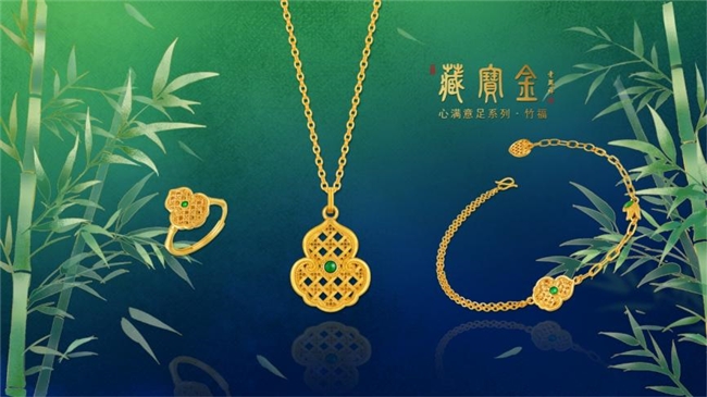 除了凤祥喜事·人生八喜系列,老凤祥对不同工艺的融合、创新还体现在许多其它经典金饰系列上。比如说老凤祥藏宝金“竹福”系列,就以国人偏爱的自然元素竹子和莲藕为灵感,结合中国传统竹编工艺,以“葫芦”近似“福禄”的传统祝愿,尽展老凤祥别具一格的中式审美与匠心设计。