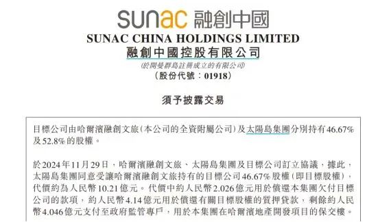 或许正因这层考量,才有了融创将所持有的哈尔滨冰雪大世界46.67%的股份尽数出售,卖给了太阳岛集团的这一幕。