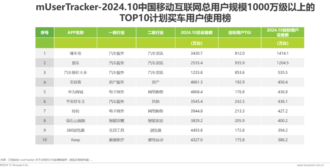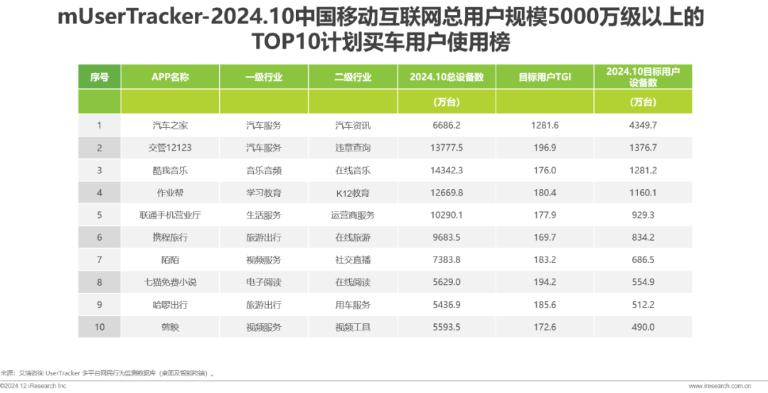 2024年10月计划买车用户使用榜