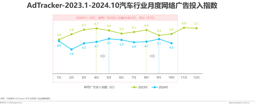 2024年汽车行业网络广告投入呈现季节性波动,波峰后移且整体承压