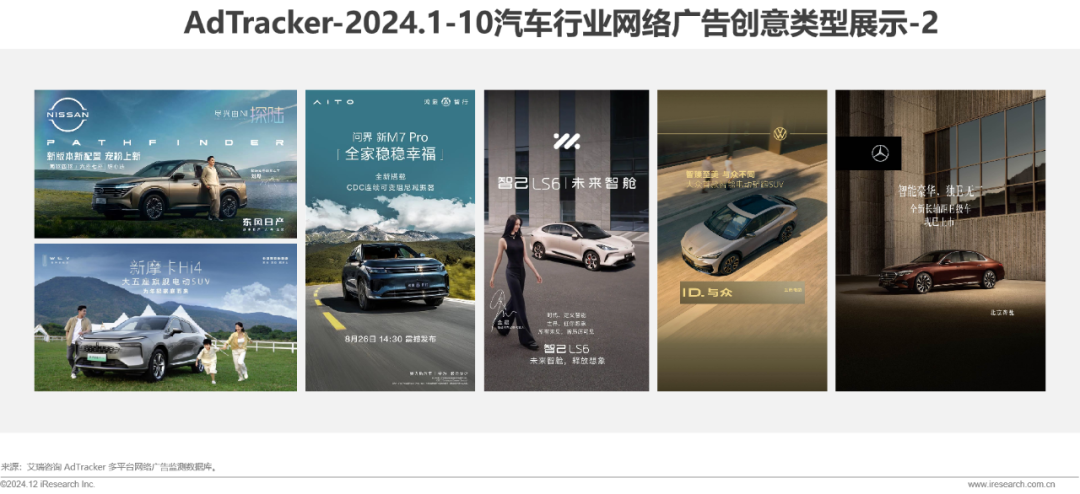 技术革新引领行业变革,智能化成为竞争热门赛道:智能网联汽车技术不断突破,自动驾驶、车联网、智能座舱等智能化功能逐渐成为部分新车型的标配。行业内广告主营销卖点紧跟技术趋势,突出智能配置,推动品牌在智能化赛道上抢占先机。
