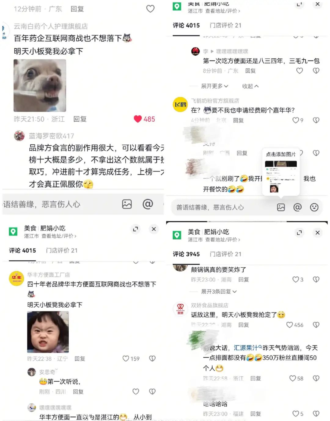 在社交平台上,不少网友通过不同方式“吃瓜”肥娟小吃的直播间。