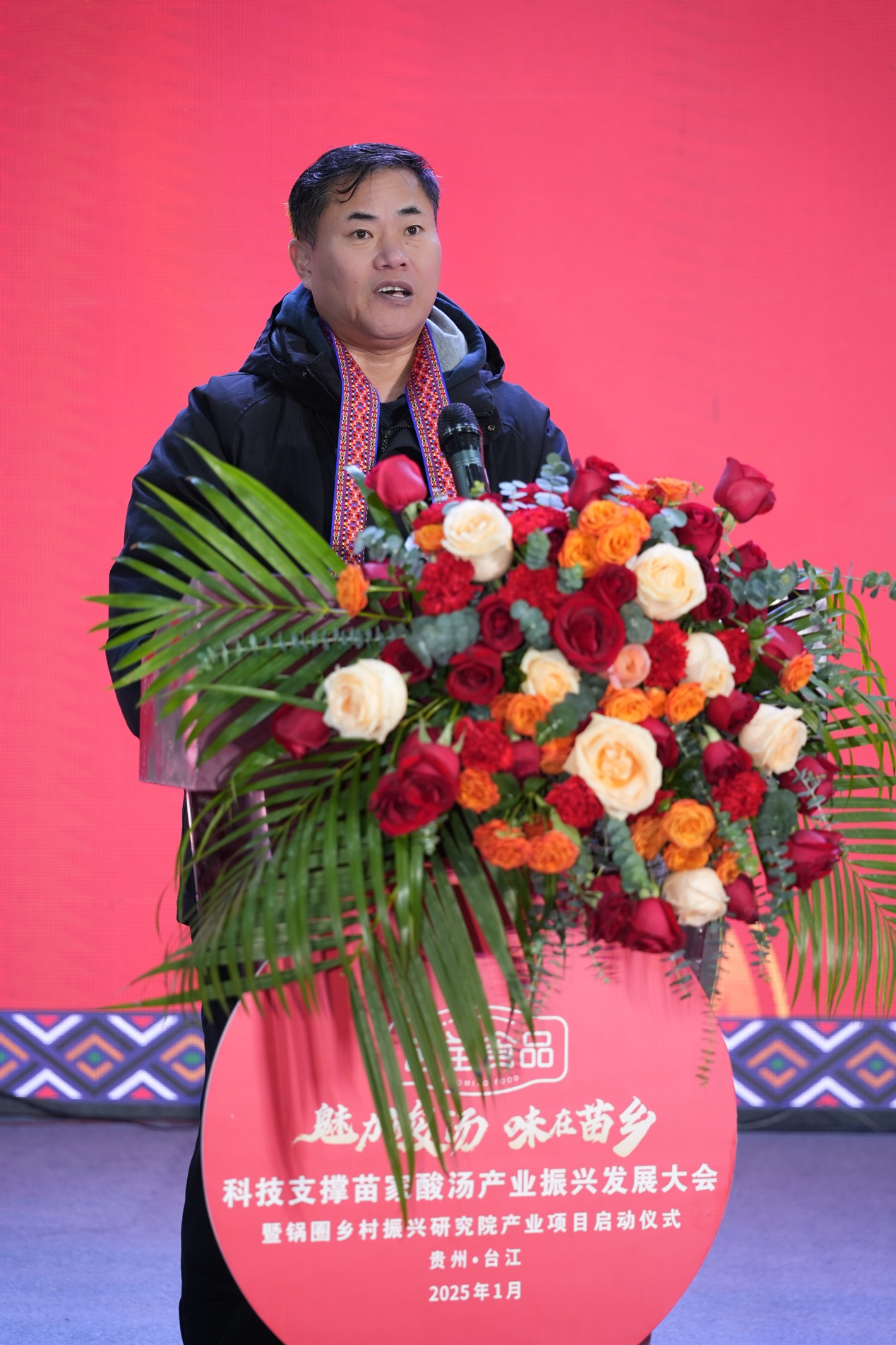1月9日,“魅力酸汤 味在苗乡”科技支撑苗家酸汤产业振兴发展大会在贵州省台江县农产品加工产业园成功举办。会议期间,锅圈食品副总裁、台江县苗苗酸汤食品董事长许诺宣布了苗苗食品一期工程正式建成落地。农业农村部原国家首席兽医师、中国乡村发展协会执行副会长兼秘书长李金祥,中国农业科学院副院长孙坦,中国农业科学院农产品加工研究所所长王凤忠、台江县委书记龙滨,锅圈食品董事长杨明超出席大会,并就酸汤产业发展的相关议题发表致辞。
