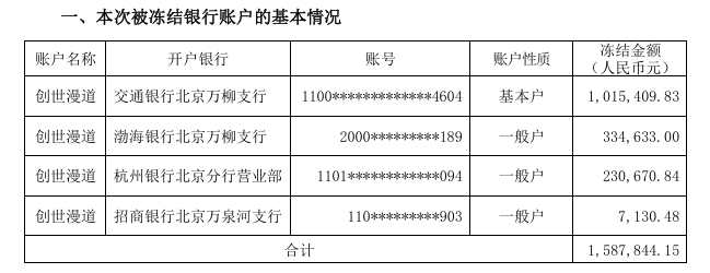 公告指出,因公司全资子公司北京创世漫道科技有限公司(以下简称“创世漫道”)与北京中天嘉华信息技术有限公司(以下简称“嘉华信息”)的合同纠纷事宜,嘉华信息向北京仲裁委提出的财产保全申请,导致创世漫道部分银行账户被冻结。