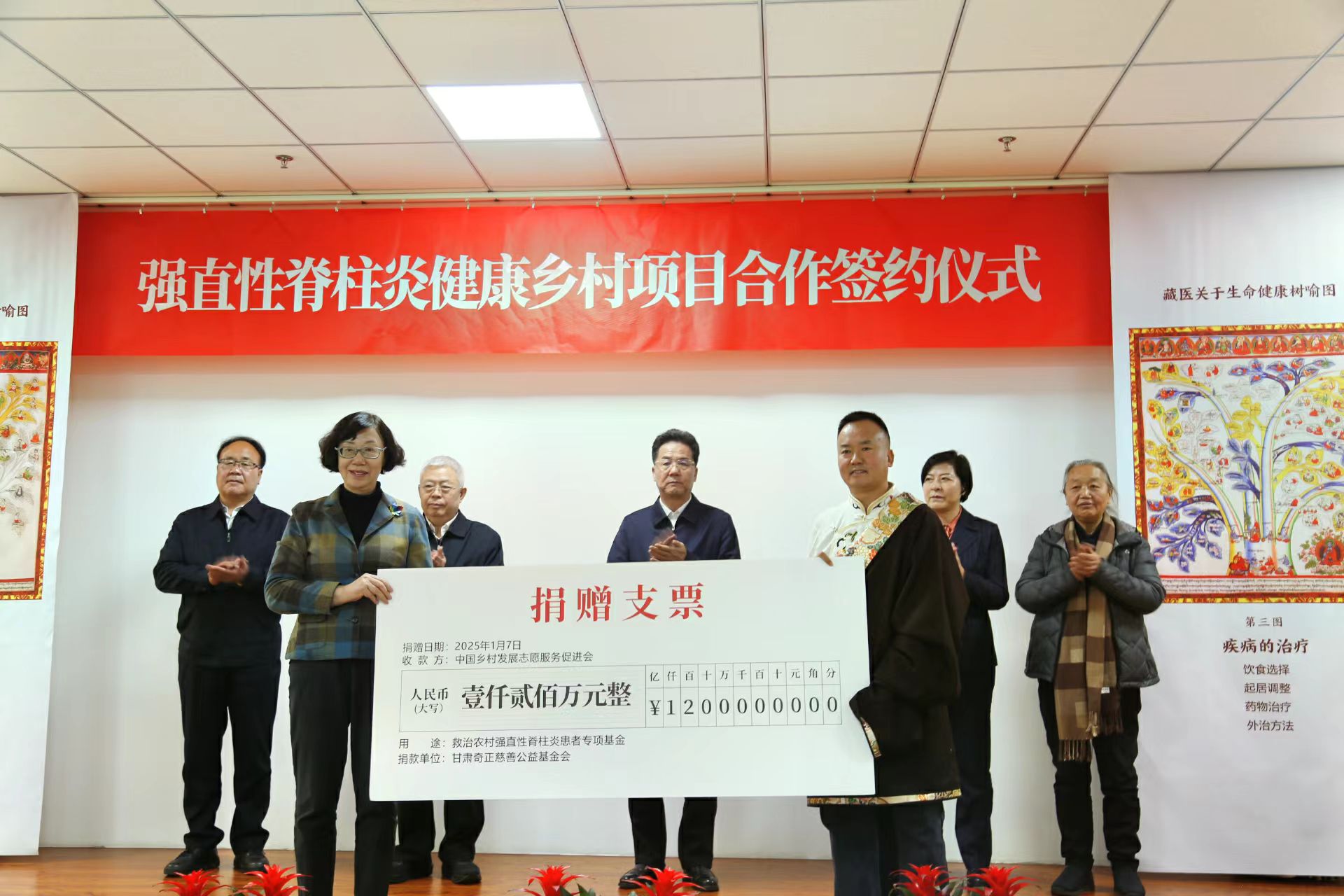 中国乡村发展志愿服务促进会与奇正藏药共同开展项目合作,致力于发挥藏医药诊疗作用,提高强直性脊柱炎诊治水平,重点针对农村强直患者的救治工作,展开为期四年的合作,由奇正藏药捐赠1200万元,为患者提供公益救治补贴,以减轻患者就医负担。