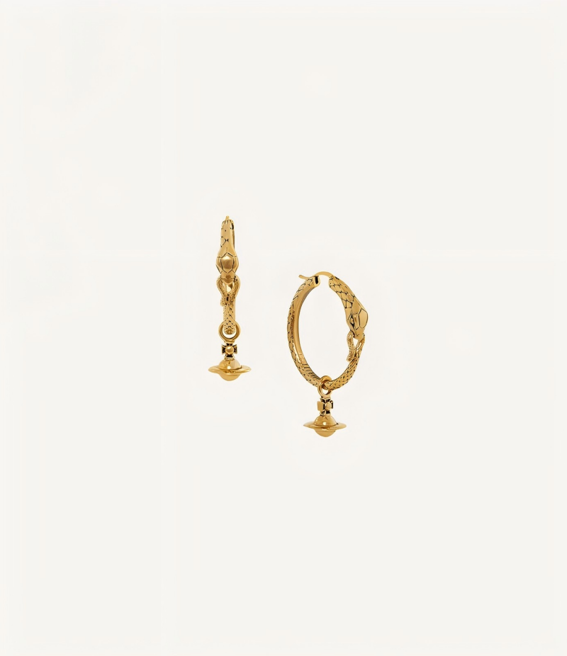 限量版Albane耳环以环状轮廓描绘一条咬住尾部的蛇,配以全金属悬挂球形,点缀黑色铜锈色的细腻鳞片。限量版Small Albane则以蜿蜒蛇身造型展现灵蛇口提金属小球的身姿,别具灵动感。
