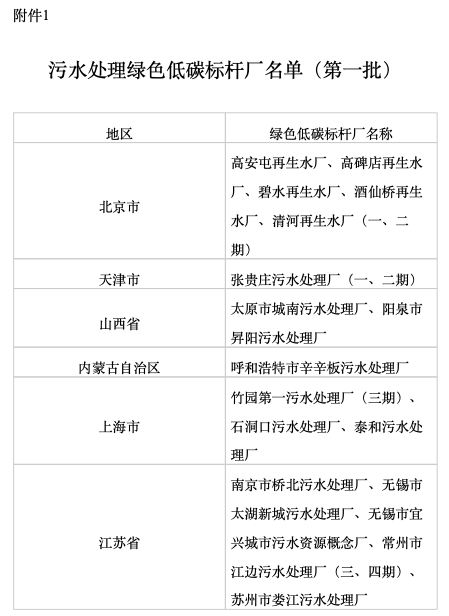 国家发展改革委办公厅、住房城乡建设部办公厅发布《关于印发污水处理绿色低碳标杆厂名单并开展对标新(改)建的通知》: