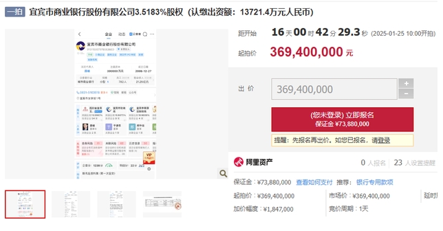 本次拍卖将在2025年1月25日-26日开拍,而此时宜宾银行已经在港交所上市交易,究竟是否有买家会出价,最终能否成交,还要看上市后的股价情况。
