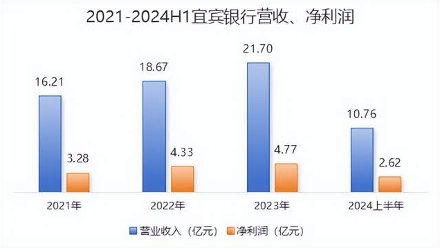 近几年宜宾银行的业绩表现良好,营收及净利润均保持一定增长趋势。其中2024年上半年净利润为2.62亿元,同比增长2.87%。