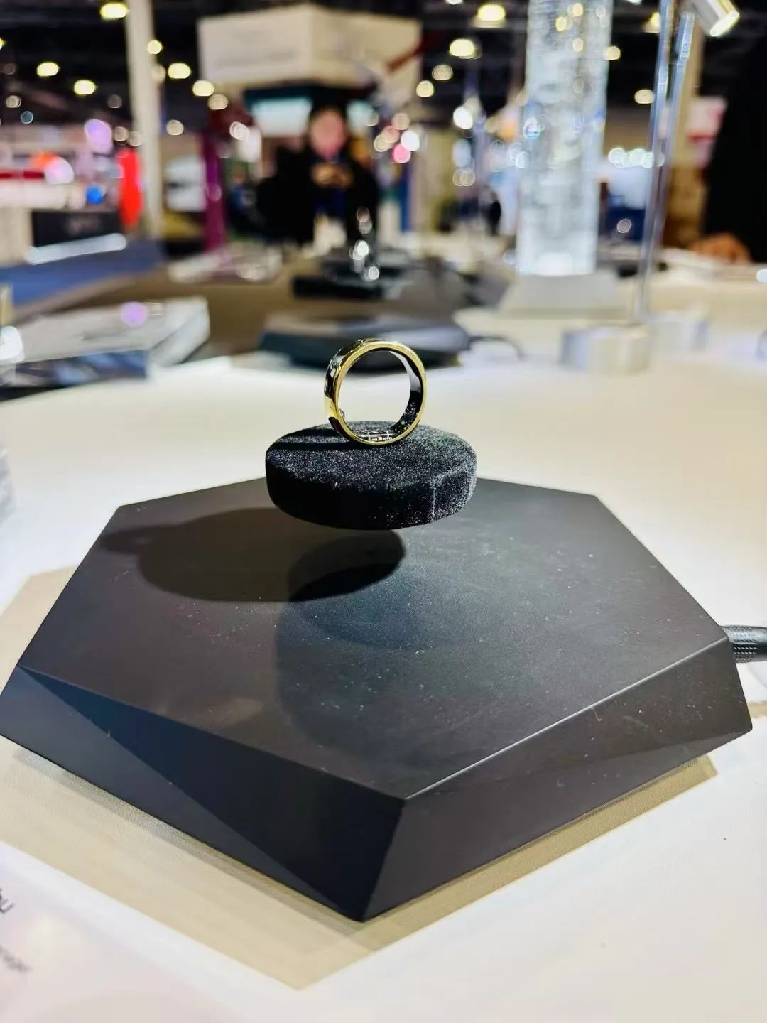 在可穿戴设备里,现场还有一款智能戒指 RingConn。它来自国内初创科技企业玖智科技,出自上海交大特聘教授、长江学者王国兴之手。这款戒指的特点是,在具备智能戒指易戴、便利监测特性的同时,还能通过前沿技术,实现了低功耗的可持续多指标监测,让健康数值更为全面、准确。