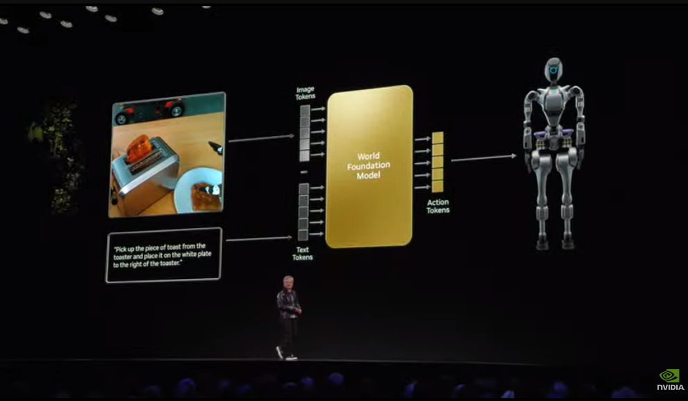 另一个是让AI理解物理世界、加速物理AI开发的基础模型Cosmos。这是一套专为物理交互、模拟工厂环境及驾驶环境生成而构建的模型。包含了自动回归模型、扩散基础、高级标记器和AI加速数据管道等组件,可从文本、图像和视频等输入以及机器人传感器或运动数据的组合中生成基于物理的视频。