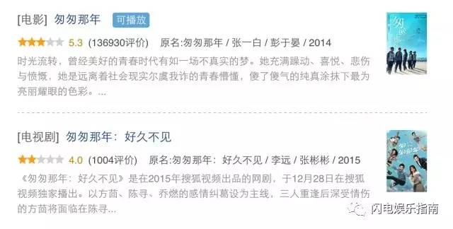 《匆匆那年》电视剧和电影评分
