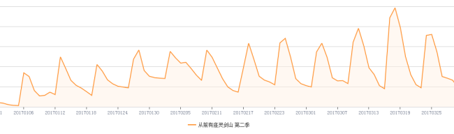 在腾讯播出的《从前有座灵剑山》第二季,自1月6日播放第一集以来,播放指数甚至出现阶段上升趋势。