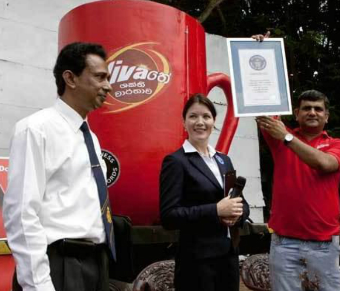 2010年,世界上最大的茶杯“维瓦”诞生在斯里兰卡,获得了世界最大茶杯吉尼斯证书。这个茶杯高10英尺,直径8英尺,可以装1000加仑的茶水。