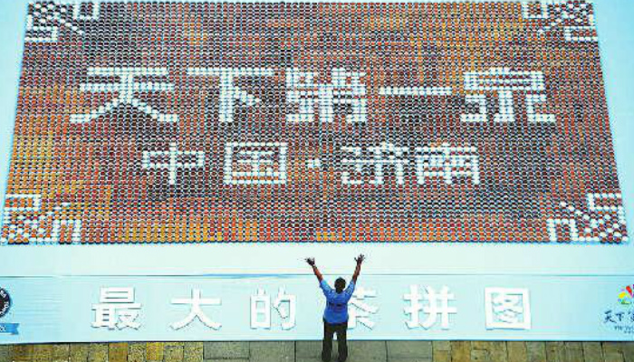 2014年30日上午9点,在天下第一泉风景区大明湖景区超然楼广场,一场泉水大碗茶“最大的茶拼图”吉尼斯世界纪录挑战活动圆满成功。