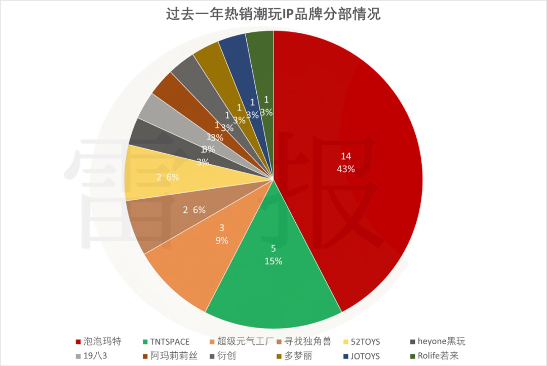 从统计结果来看,32个潮玩IP共来自12家潮玩品牌。